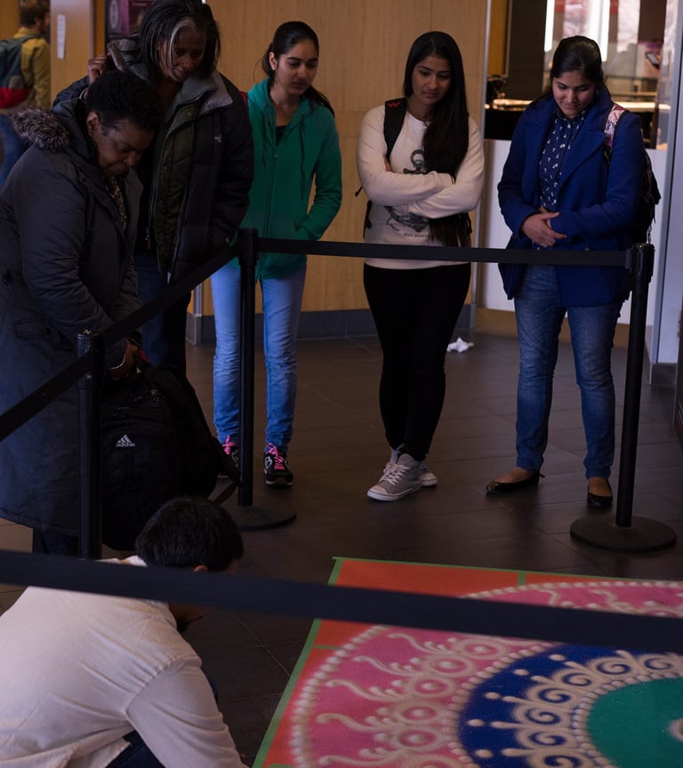 Deep was presented at Mohawk College during International Education Week in January 2016. This marked the first international presentation of my Rangoli practice, bringing a South Asian floor-based art form into a space where it had never been seen.