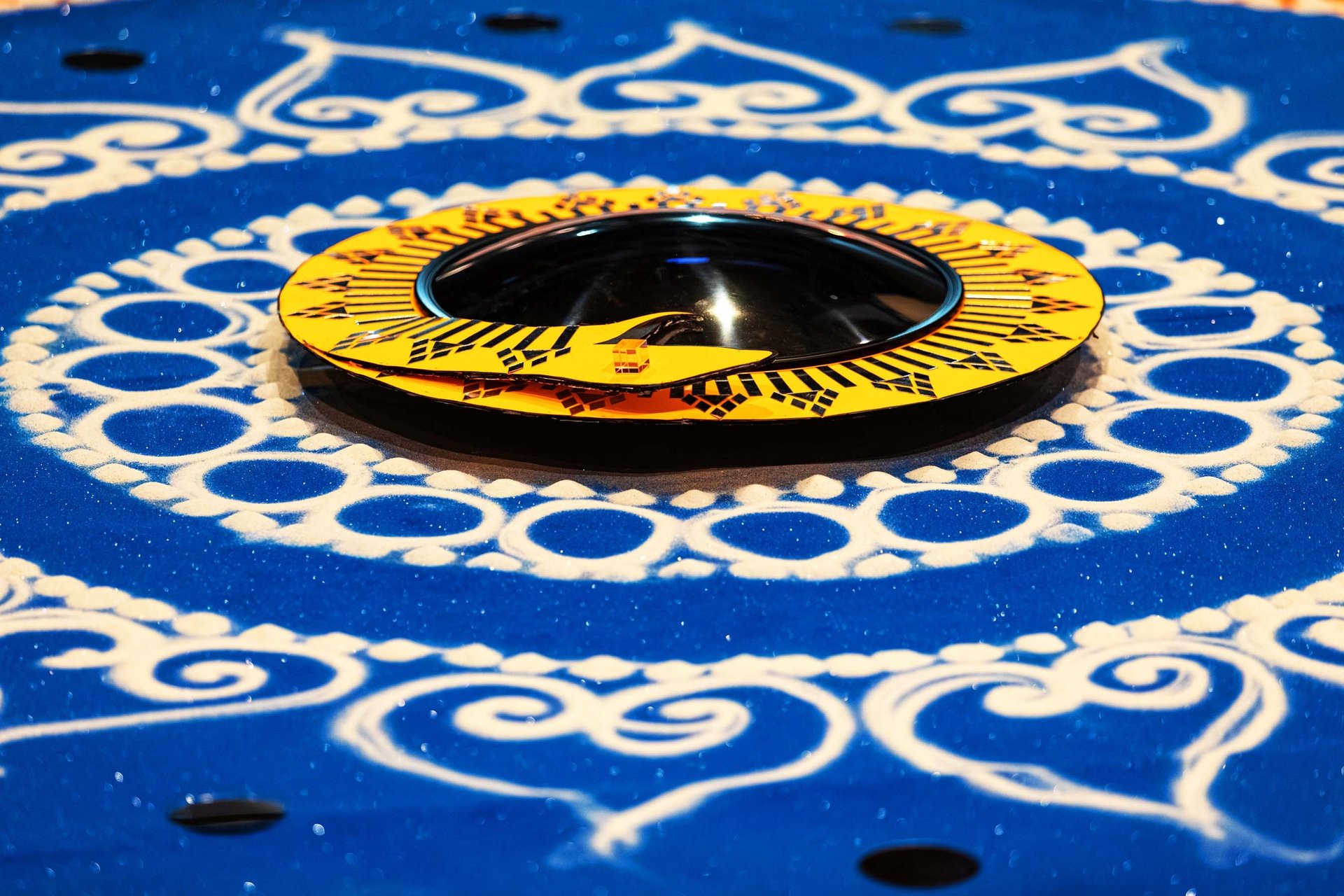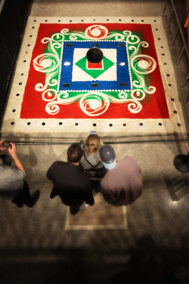 Preinstalled Rangoli: 12 x 12 feet with a central mirror, designed for viewer interaction.