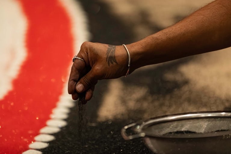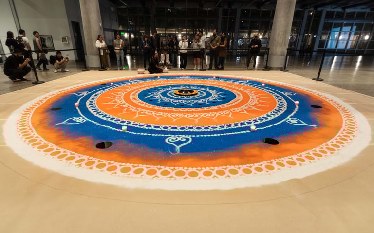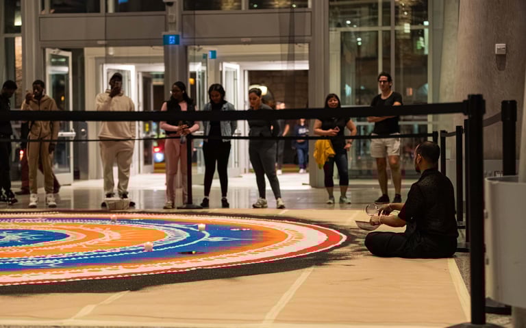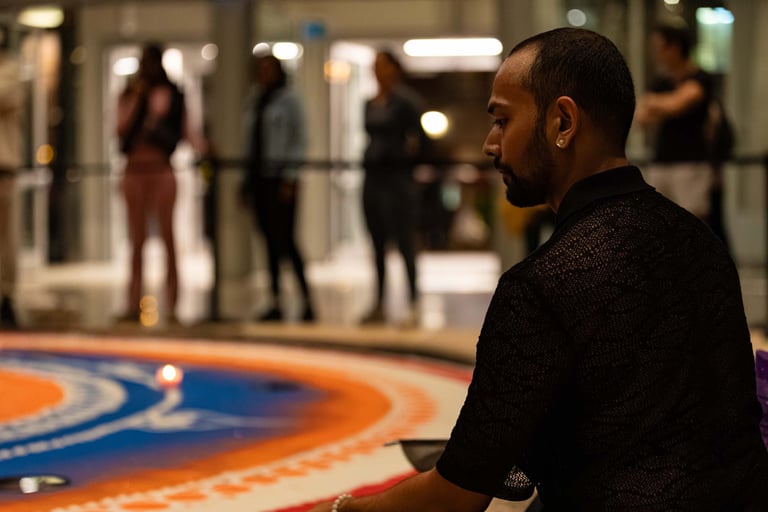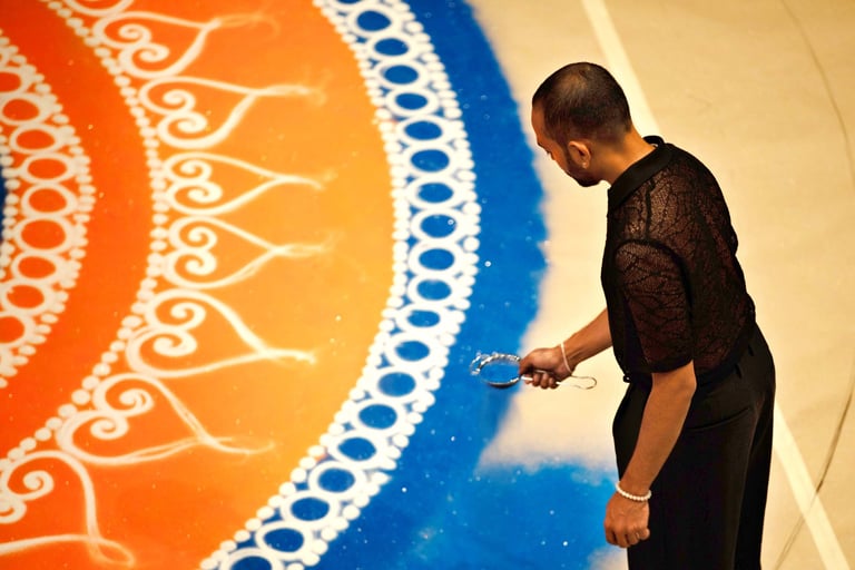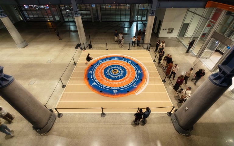 This installation expands the presence of South Asian diasporic art in North American contemporary spaces. By presenting Rangoli at large scale in its unapologetically traditional form, it challenges conventional expectations of contemporary art and affirms the relevance of South Asian aesthetics in public and institutional contexts. The work asserts cultural authorship and positions Indian artistic identity as contemporary, performative, and site-responsive rather than solely historical or folkloric.