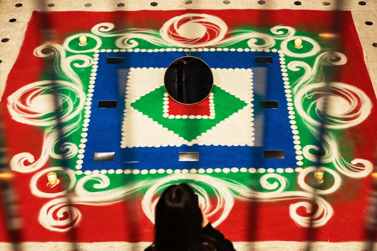 By placing a South Asian cultural form in the heart of a contemporary art festival, the installation acts as a translation itself, transforming a domestic ritual into a public intervention while keeping its cultural integrity intact.