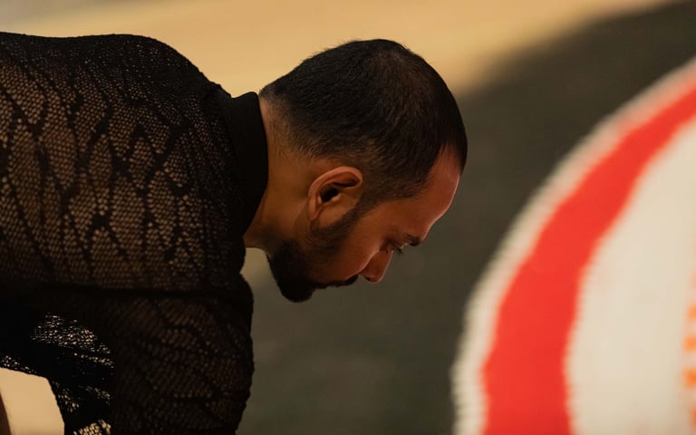 Together, the installations form a total of 120.18 kg of sand, creating an expansive, immersive experience that blends ritual, performance, and contemporary installation practice.