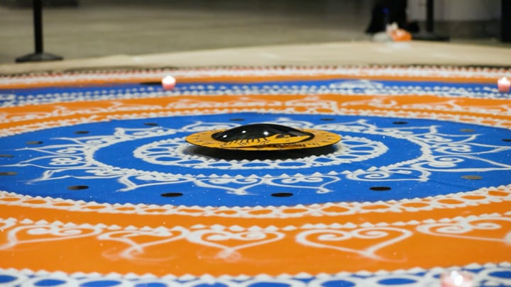Live Rangoli: 30 x 30 feet, created over ten continuous hours using 97.5 kg of sand.